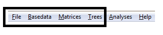 To open pre-existing data (i.e. a Project, BaseData, Matrix or Tree saved to disk), select Open under the desired menu option and then navigate to the relevant file to load it: