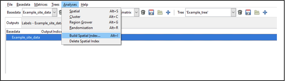 Select Build Spatial Index from the Analyses menu option: