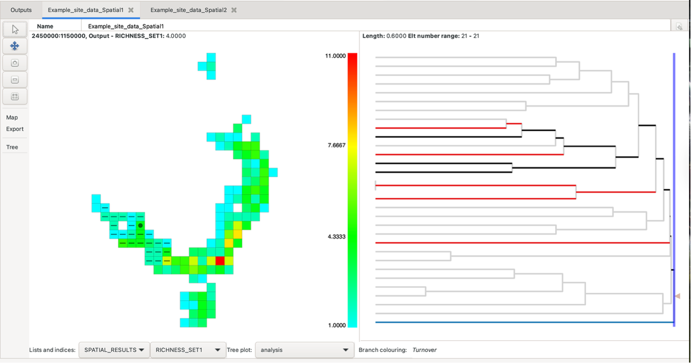 There are three main analyses in Biodiverse, moving window (spatial) analyses, cluster analyses and randomisations. These are described here, following a description of the spatial index which you would normally want to use to speed up any spatial conditions used in the analyses.