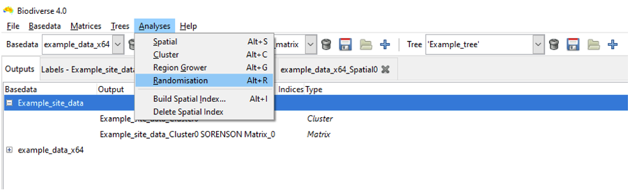 Randomisations can be run by selecting the Analyses>Randomisation menu option: