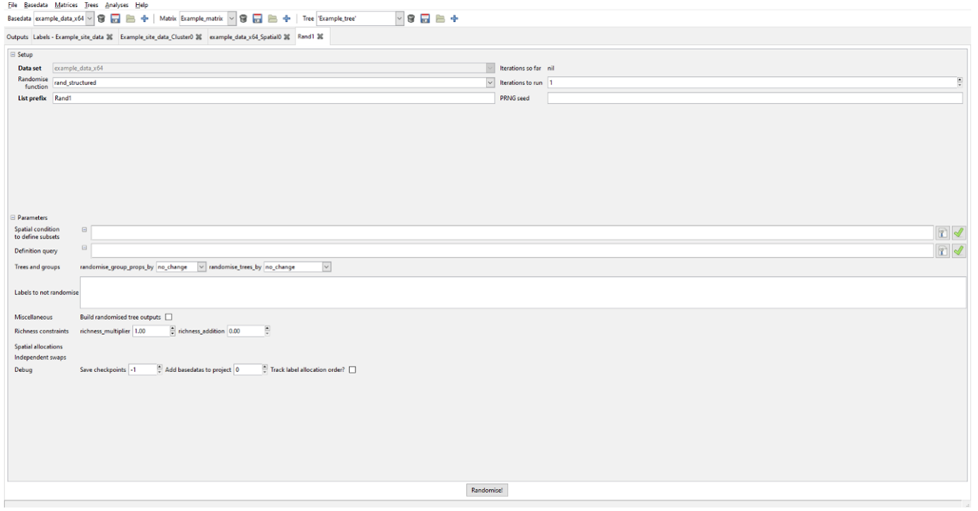 The basic process of the randomisation is this. For each iteration of the randomisation analysis, Biodiverse will: