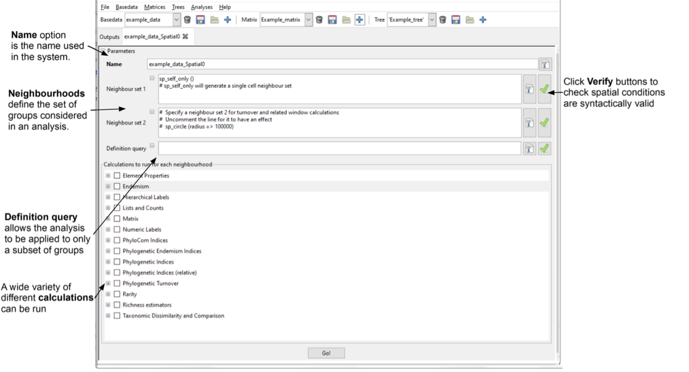 Click on the Go! button. The system will then run the selected spatial analyses.